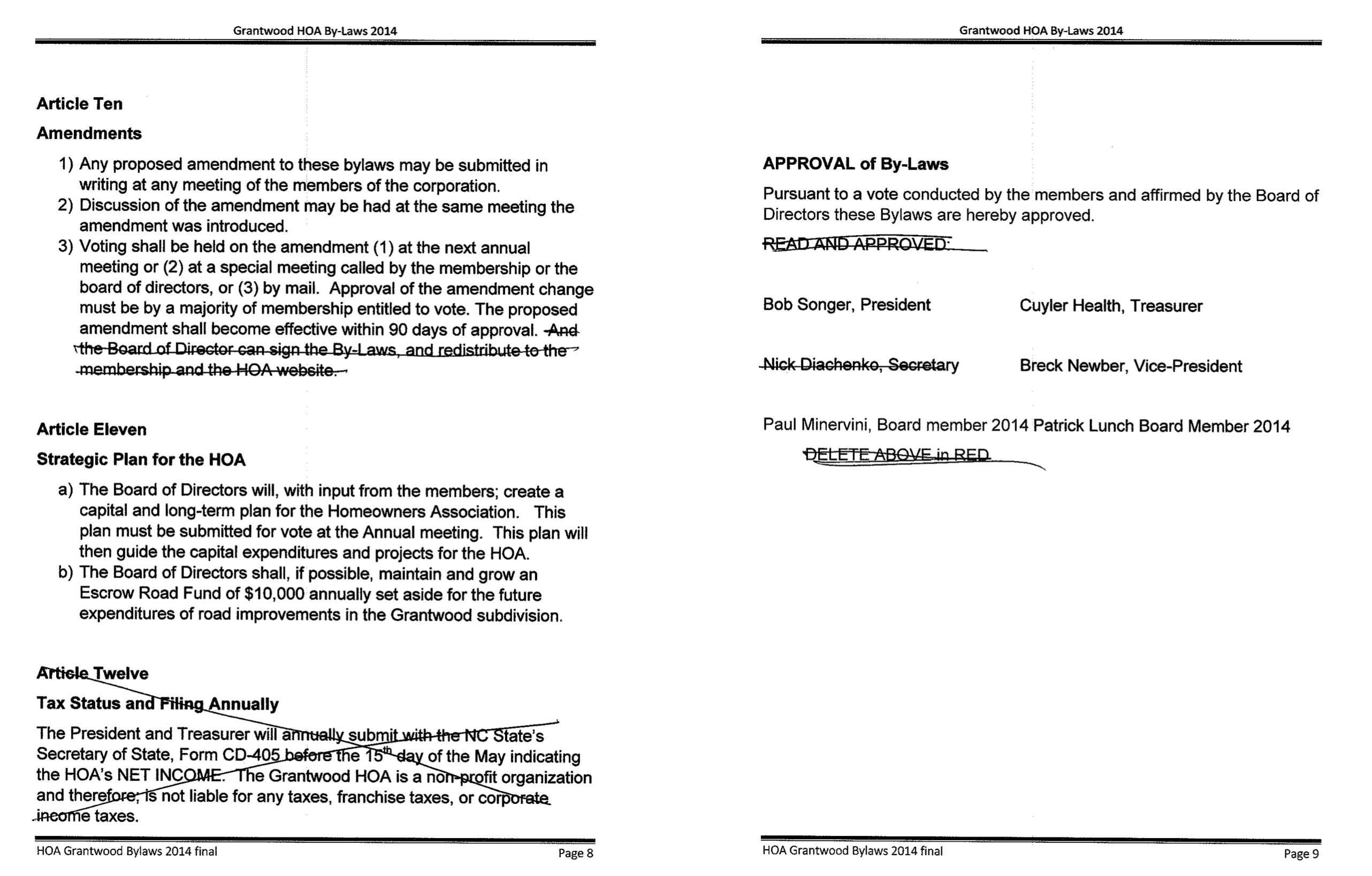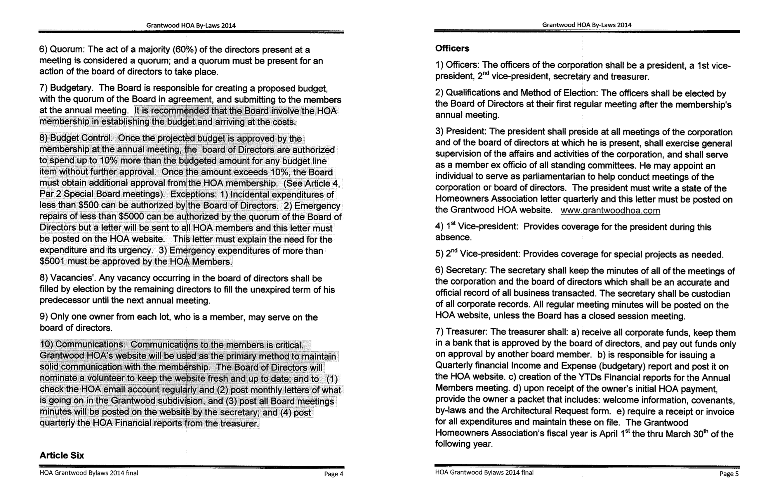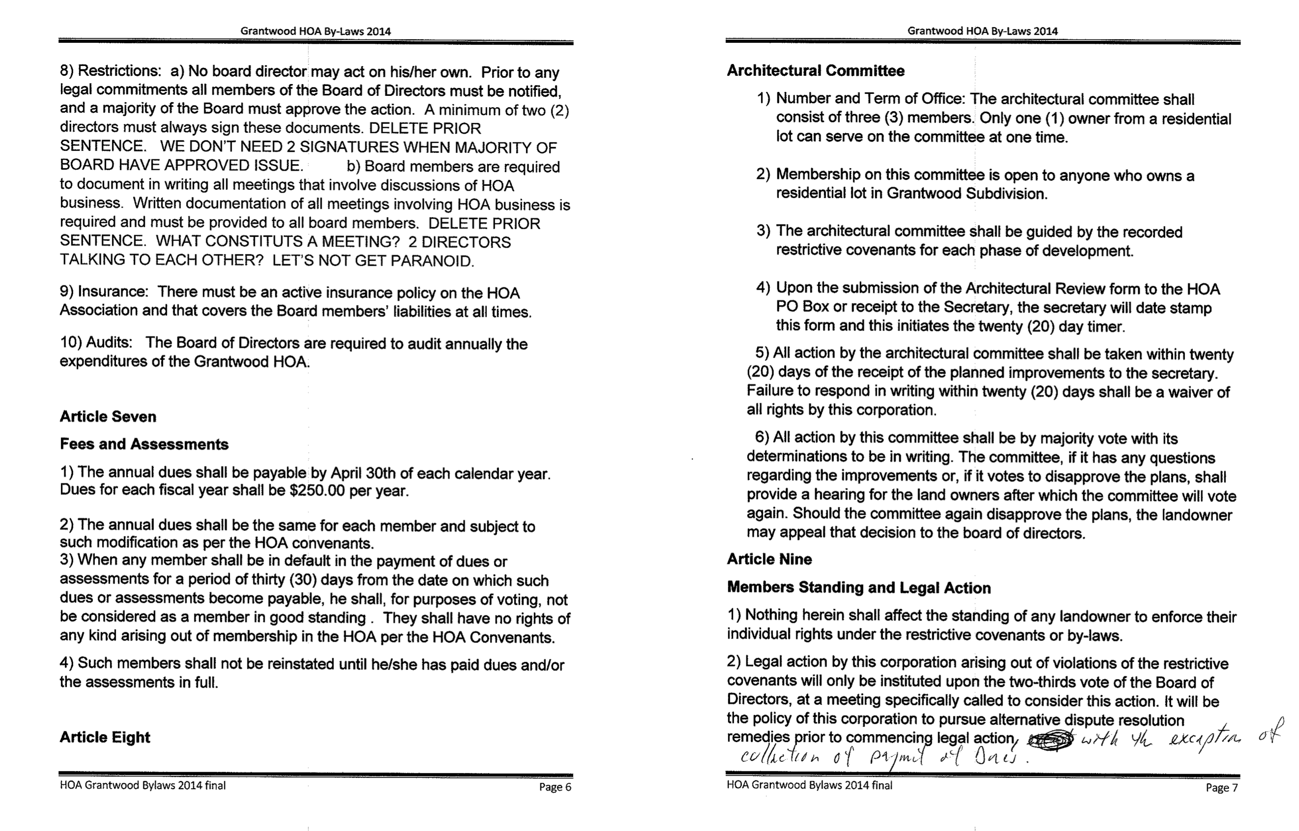To see the Bylaws scroll down and click the arrows to scroll through the photos to either the right or left.